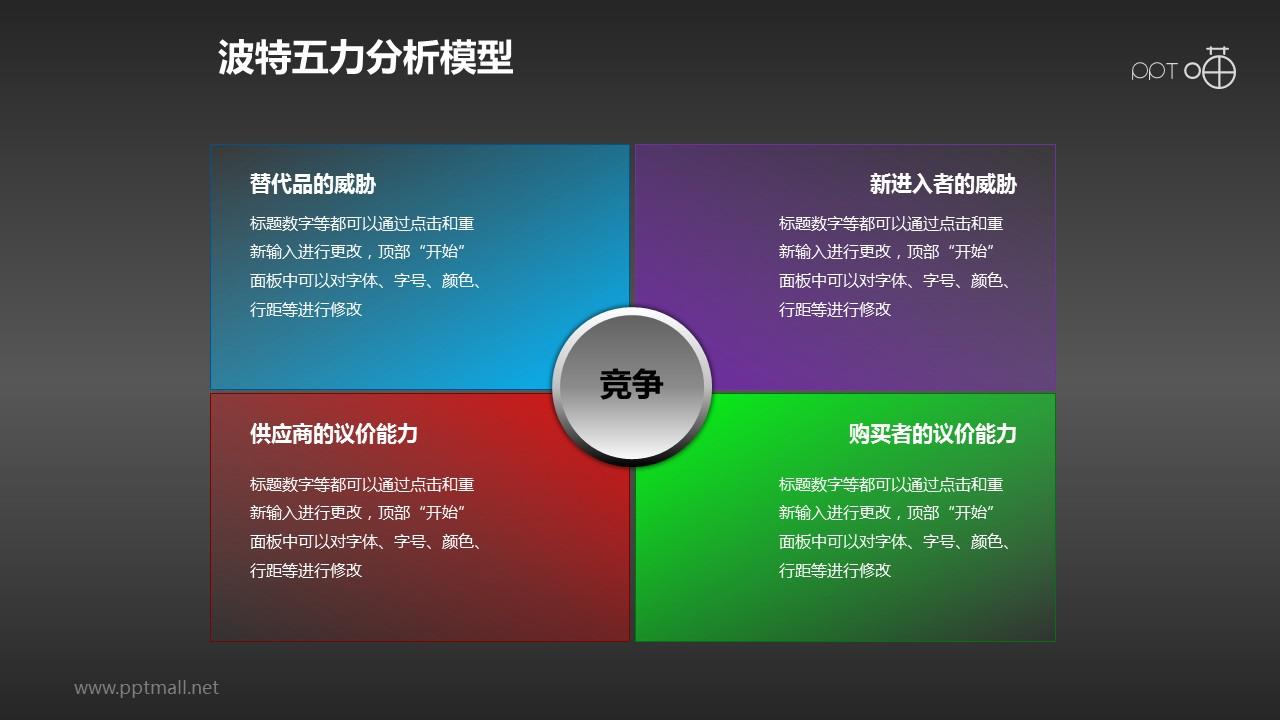 • 橫向力量:替代品的威脅,新進入者的威脅,競爭性競爭