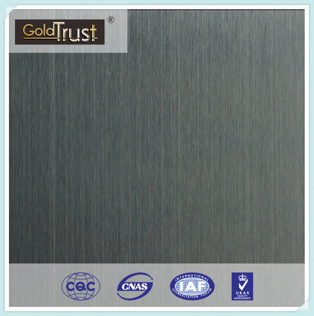 黑鈦不銹鋼板又名黑色不銹鋼板。它的表面有鏡面黑鈦板、黑鈦拉絲板等等。材質有201、304、316等,常規(guī)尺寸為1220mm*2400mm、1000mm*2000mm、860mm*610mm、1220mm*3050mm等等,厚度在0.28mm~5mm。黑鈦不銹鋼板可真空鍍可水鍍,水鍍顏色比真空鍍顏色更鮮艷,缺點是304材質鍍出來偏藍。