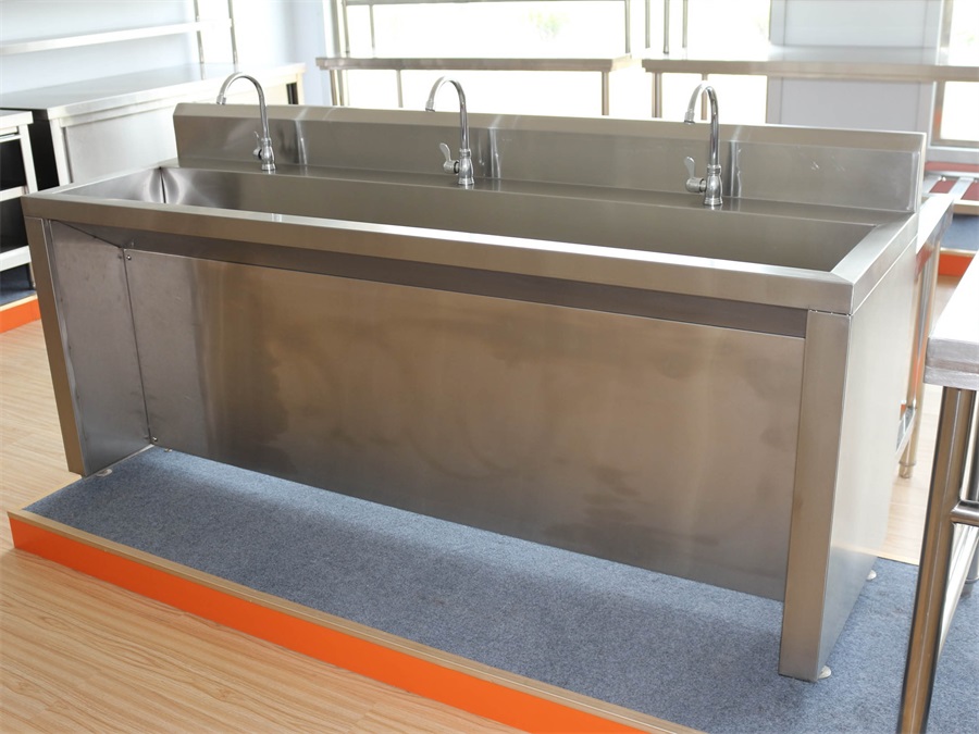 洗手池是手術醫務人員洗手專用設備,采用人體感應自動給水,因此無需使用人員觸摸,保證清潔,流量為500l/h,采用0.1μm超濾膜,可將至毒病菌全部濾掉,同時采用雙柱超濾組件,具備反沖技術,可長期使用。醫用洗手池,整體采用不銹鋼SUS304、1.2mm不銹鋼制造,外觀美觀,經久耐用。