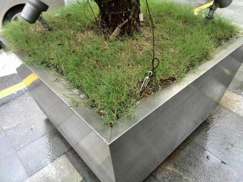 3、不銹鋼花壇透氣性好,不積水、不易損壞,比塑料花盆更利于樹木生長(zhǎng)。
