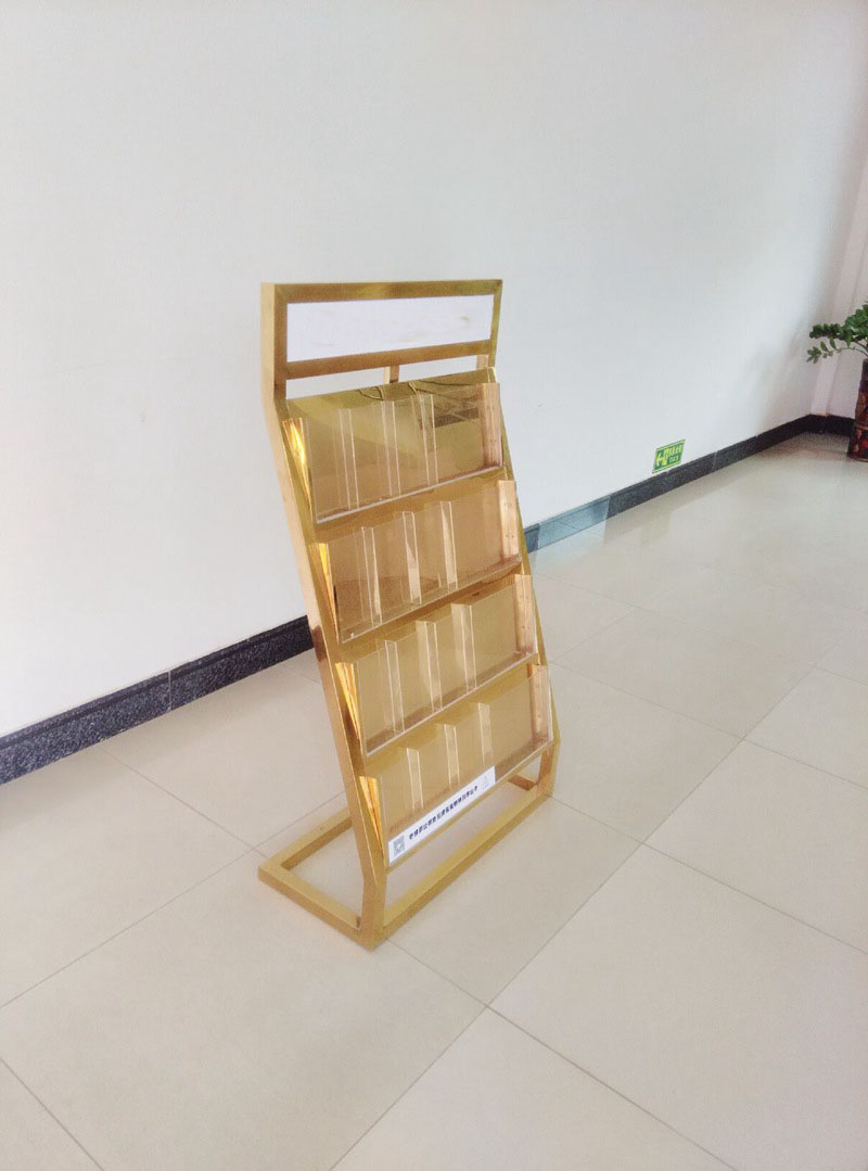 鈦金不銹鋼展示架批發 2017-06-1213:57:36鈦金不銹鋼展示架批發已關閉評論一般的不銹鋼展示架都是銀色的,很普通,但是這款由北京金利恒旺公司加工的不銹鋼展示架卻是金色的,顯得很獨一無二,高端大氣上檔次。它和普通的展示架制作工藝都差不多,都是先用不銹鋼管切割焊接而成,再經過車間師傅的精心打磨拋光,最后的一個步驟就是鍍鈦工藝,也就是上色的過程。就是把這個展架放進鍍鈦爐里面去進行鍍鈦金的一個過程。產品規格:材質:201不銹鋼或304不銹鋼品牌:金利恒尺寸:可定制:效果圖:現代,歐式,中式參考批發價格:500-900元一個。廠家:北京金利恒旺限公司 贊 1 分享