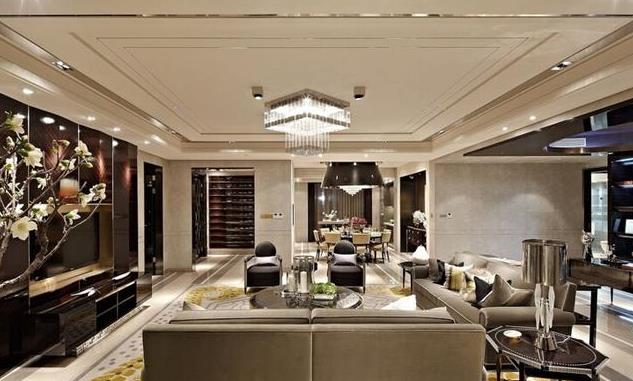 這樣的不銹鋼線條吊頂是不是讓整個天花板都生色不少?用不銹鋼來裝飾吊頂邊緣,就像是為整個家居天花板系上了一條銀亮的絲帶,時尚、美觀、大方。且與整體家裝風(fēng)格相一致,搭配精美的水晶吊燈,營造的整個客廳時尚感爆棚。