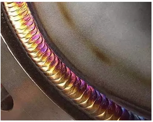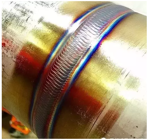 對,銀白色所以,在氬弧焊過程中,焊縫好看、漂亮不一定是最好的另外,在氬弧焊過程中是不是還會出現下面這種顏色五彩的顏色