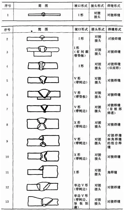 根據(jù)坡口的形狀,坡口分成I形(不開坡口)、V形、Y形、雙Y形、U形、雙U形、單邊V形、雙單邊Y形、J形等各種坡口形式。
