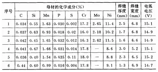 (7)母材的化學(xué)成分??母材的化學(xué)成分不同,在其它工藝因素不變的情況下,焊縫形狀不一樣,這一點(diǎn)在氬弧焊時特別明顯。如三種產(chǎn)地不同的0Cr18Ni19和0Cr18Ni12Mo2不銹鋼,用鎢極氬弧焊方法焊接,采用相同的焊接工藝參數(shù)時,所得焊縫形狀的變化,見表1—10。