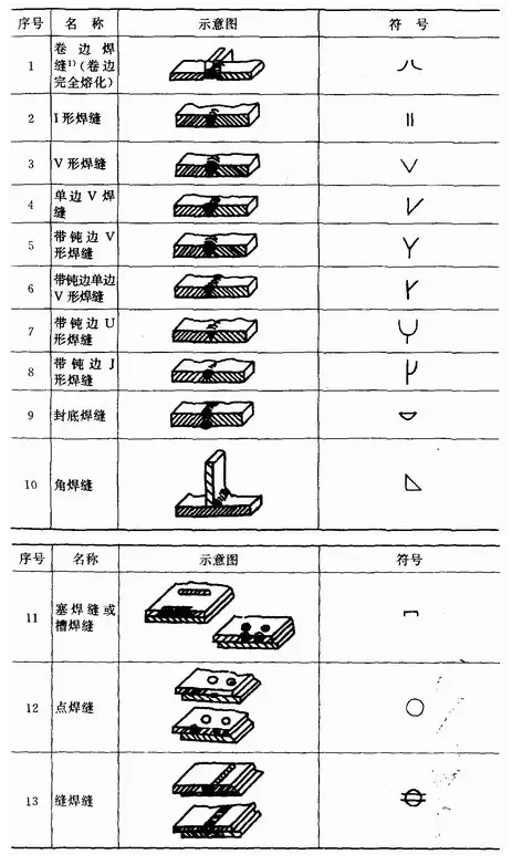 基本符號是表示焊縫橫截面形狀的符號,見表1—4。