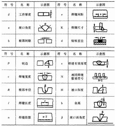 焊縫符號一般由基本符號和指引線組成。必要時還可以加上輔助符號、補(bǔ)充符號和焊縫尺寸符號等。