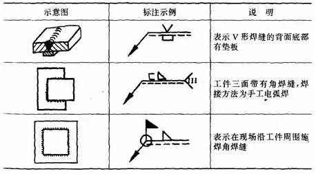 補(bǔ)充符號是為了補(bǔ)充說明焊縫的某些特征而采用的符號,見表1—7。應(yīng)用示例見表1—8。