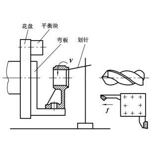 如圖5.2.9所示,成形刀法是用刀刃形狀與成形面母線形狀相吻合的成形刀進(jìn)行車削的。加工時(shí),車刀只作橫向進(jìn)給運(yùn)動(dòng)。由于刀刃與工件的接觸長(zhǎng)度較大,容易引起震動(dòng),因此要求機(jī)床和工件有足夠的剛度,還應(yīng)采用較小的進(jìn)給量和較低的切速,且要施加足夠的切削液。成形刀法車削成形面的表面粗糙度R a為6.3~3.2。